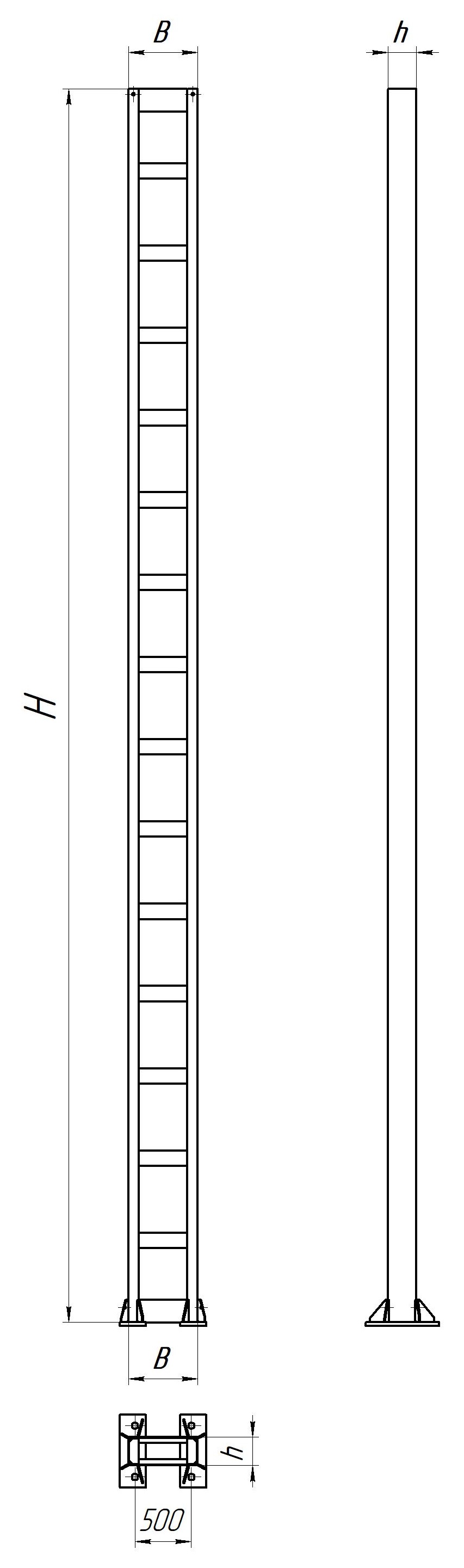 Конструкция опоры выполнена в форме объемной металлической рамы с полым профилем. Основными компонентами являются пояса, выполненные из горячекатаных швеллеров, а остальные части (планки, диафрагмы, опорные плиты с ребрами жесткости) сделаны из листового металла. Соединение деталей производится сварочным методом.