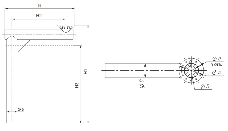 | H | H1 | H2 | H3 | D | d | n | А | Б | ||